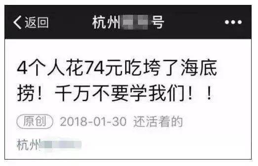 原来早在2018年,就有一篇“4个人花74元吃垮海底捞”的文章,刷爆朋友圈。