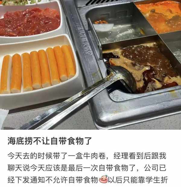 海底捞不让自带食物了。