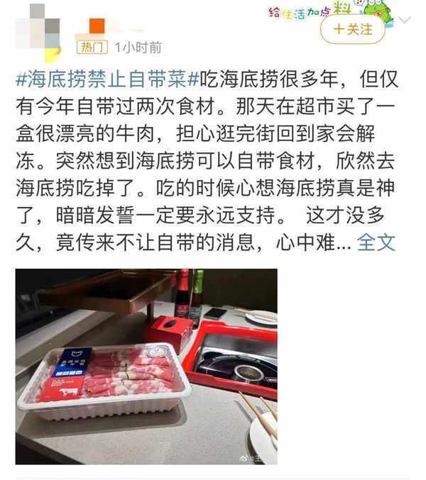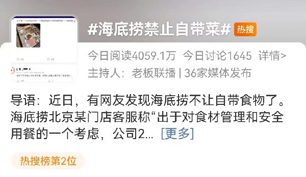 话题“海底捞禁止自带菜”