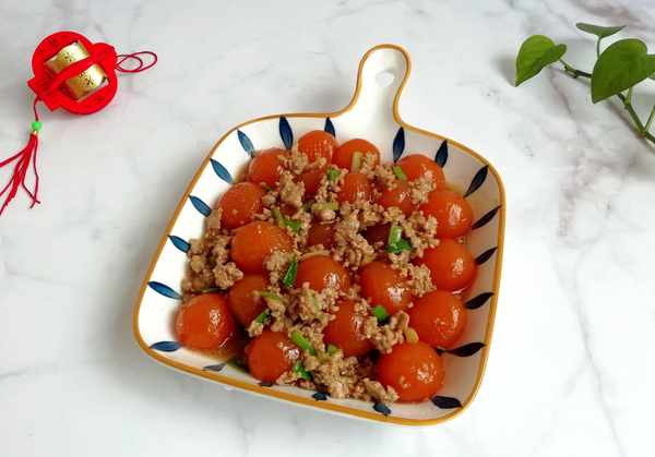 5、锅中油烧热,加入肉碎炒香,倒入适量水烧开,再加入丸子焖1分钟。