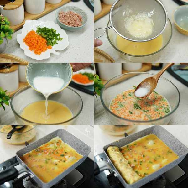 鸡蛋卷中加入牛奶、胡萝卜和午餐肉,不仅丰富了鸡蛋卷的味道,同时还增加了它的营养,金黄的色泽看起来非常诱人,是很多老人和孩子不能拒绝的美味。