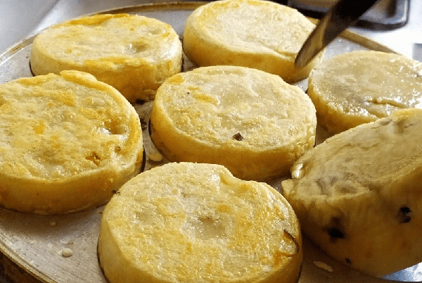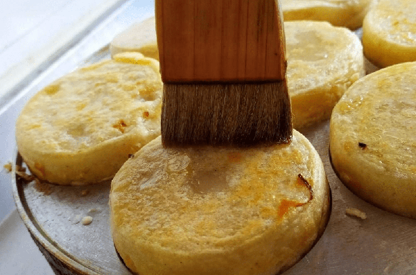 步骤七:接下来,在饼上刷油,翻面,再刷油,再翻面,勤翻面和烙饼一样。