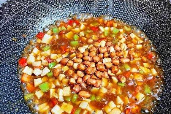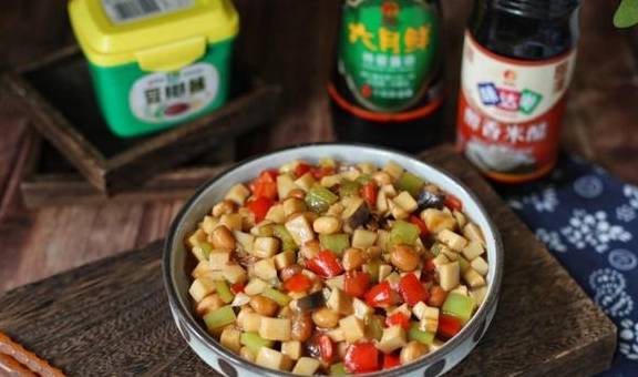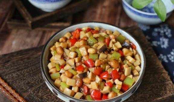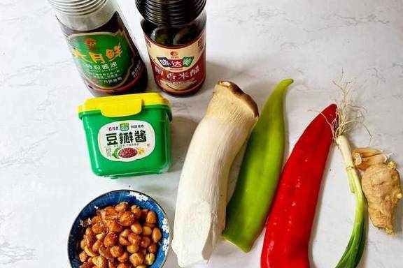 下面咱们就一起用杏鲍菇来做这道人间美味,这道菜品鲜香味美,做法简单,一周吃3次都不会腻,而且脂肪含量低,也很适合当作晚餐,促消化,易吸收,不会给肠胃造成负担,非常适合秋冬季节吃,既能补身后又能解馋,一举多得,大家快来试试吧!【菜品】:宫保杏鲍菇【烹饪食材】:杏鲍菇1个、花生米50克、青椒半个、红椒半个、葱1根、蒜2瓣、姜2片、豆瓣酱1勺、酱油1勺、米醋2勺、白糖1勺、玉米淀粉1勺、水半碗、食用油适量。