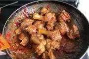 8,鸭肉煸炒变色后加入少量的糖一起煸炒;