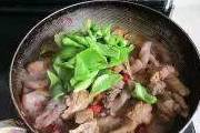 15,起锅前加入青椒和盐;