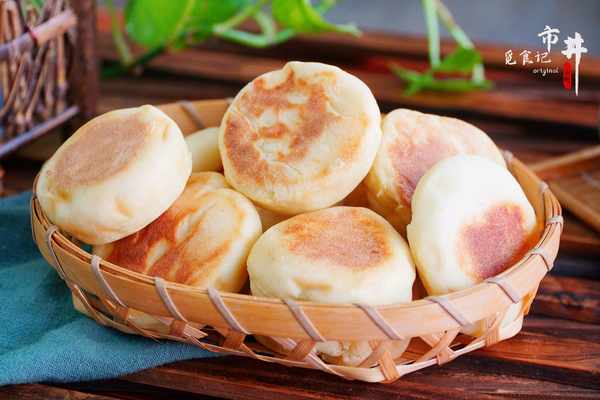 6、把小圆饼放进无水无油的锅中,盖上锅盖再醒发半小时,膨胀后开火烙成两面金黄。