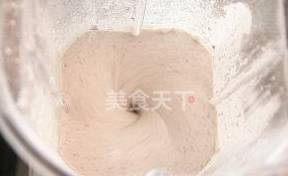 2将110g粘米粉,100g糯米粉,150g蜜红豆和盐,依次放进料理机的调理杯中,加入190g清水,然后搅打成糊状。中间可以用搅拌棒帮助搅拌一下,搅打的次数根据自己喜欢的细腻程度来调整。我用的是破壁机,看,这个漩涡很好看吧~~;