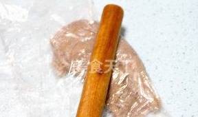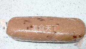 15.最后将年糕面团整成圆柱状,用保鲜膜包裹住;