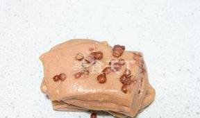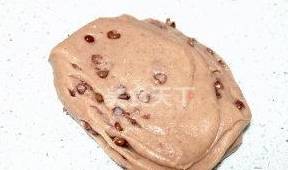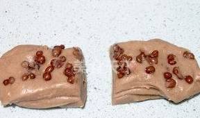 14再次分成几小块,继续铺上红豆,再叠加压扁分割,重复这个过程3~4次;