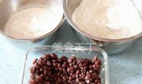 糯米粉200g粘米粉100g自制蜜红豆180g清水190g盐一点点发酵黄油
