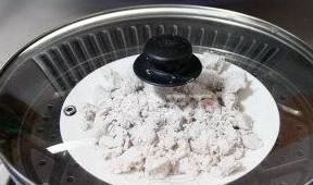 9放入蒸锅,大火上汽后,继续蒸40~50分钟。到时间后,可以用筷子试一下。如果筷子插入粉团,拔出后无附着物,那么就是蒸熟了;