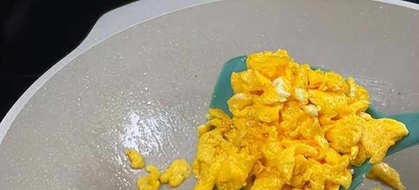 切好的山药加少许面粉搅拌均匀,锅里加少许油,倒入鸡蛋,煎成均匀的小块装进碗里待用。