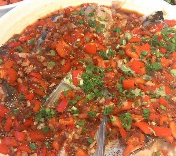 3,铺上剁椒蒸八分钟虚火蒸两分钟。撒上葱姜蒜末。