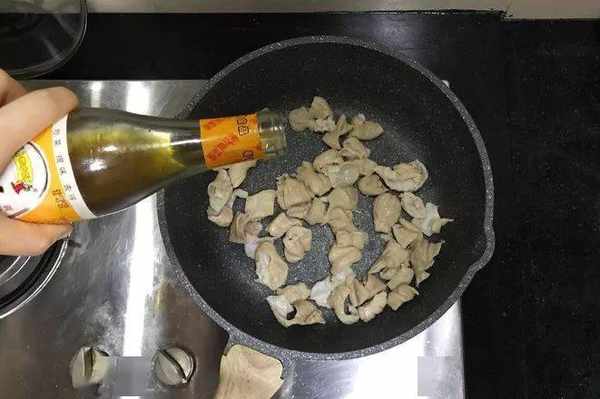 将肥肠倒入锅内