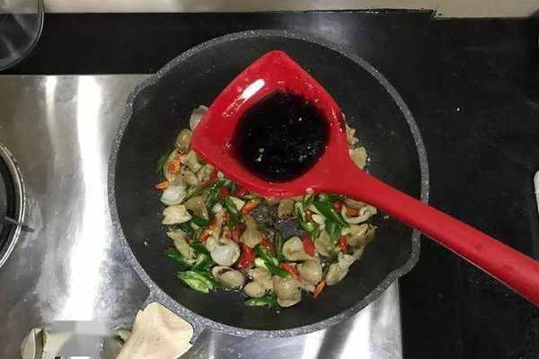 加入生抽、老抽翻炒