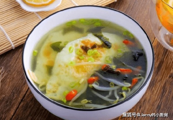 推荐食谱:煎蛋裙带菜豆芽汤