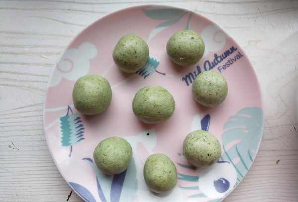 由于是做实验,没打算做太多的糕点,所以就采摘了鼠尾草,洗净加白糖煮熟。把糯米粉混合揉好(敲黑板:这是糯米粉),这次揉的时候手感很好,糯米粉的量也适合这个。