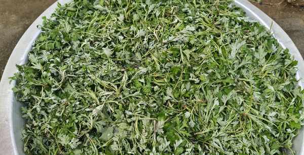 洗艾草是一项细心的工作。必须先把艾草上的杂草除掉,然后倒入清水中。小心翼翼地一件一件地清洗,不仅要洗掉沉淀物,还要洗掉上面的灰尘和杂物。洗三遍。