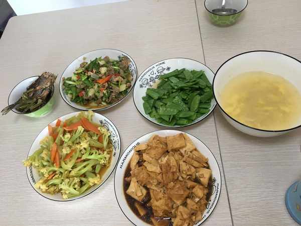 今天老母亲做了几个菜,反正就一家五口人在一起吃。早上起得比较晚,所以也没吃早餐了。