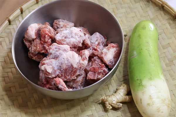 准备食材:排骨一斤半,萝卜一根,姜、红枣、花椒、盐