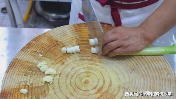大蒜拍扁,大葱切成丁,放在一起备用。