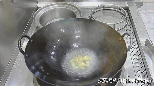 锅中留少许底油,把葱,蒜倒入锅中翻炒出香味,接着放入一勺清水。
