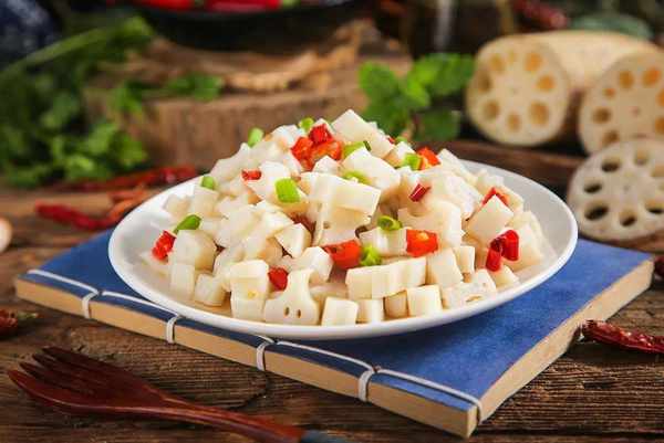 将切好的藕用清水浸泡,以水隔离氧气,能有效地避免其变黑。如果用清水洗净莲藕,则可使其颜色更白一些。水里还有少许白醋或者柠檬片比较好。如果将去皮的莲藕放入冷水中浸泡,可使莲藕表皮保持洁白。而浸泡过的藕面淀粉含量降低,炒制时还不易粘锅。