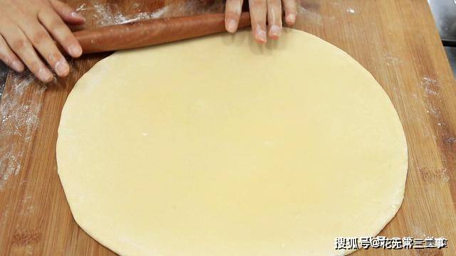 用擀面杖擀成擀成圆片,面团比较硬,开始擀的时候面片会回缩,要用点力气, 不太好擀