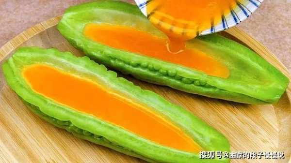 苦瓜炒鸡蛋相信大家都吃过,但是你吃过苦瓜蒸鸡蛋吗?先将苦瓜对半切开,用勺子挖去里面的籽,然后将鸡蛋蛋清分离,先将蛋清舀进苦瓜槽上锅蒸。