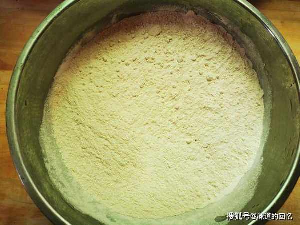 3、接下来我们开始和面,首先烧一锅滚烫的开水,准备适量面粉,一边倒开水一边用筷子搅拌,搅拌成絮状之后,等不烫手的时候,和成软硬适中的光滑面团。
