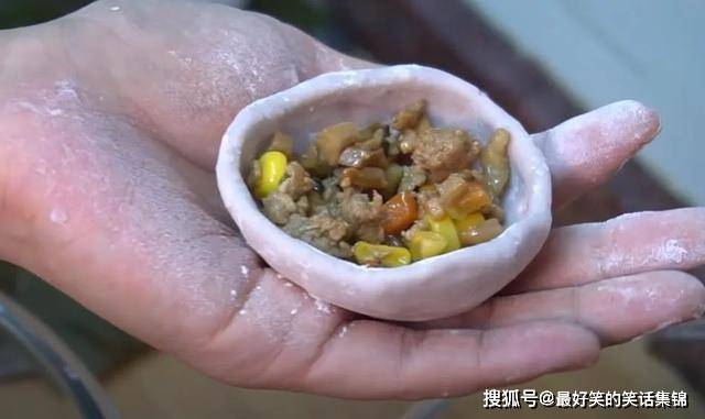 2、面团分成均匀小份,搓扁成面皮,可以在中间放入肉末馅料,也可以放红豆沙馅料,喜欢什么馅料放什么馅料。将馅料包裹起来,形成团子。