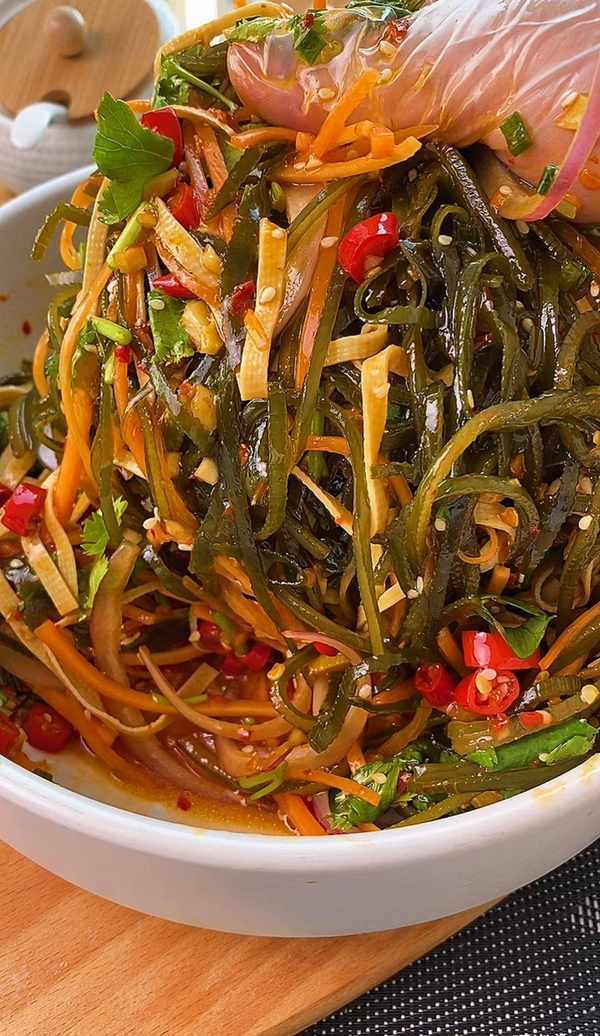 海带丝冷水泡发,泡好就能吃,不用煮,简单又方便。