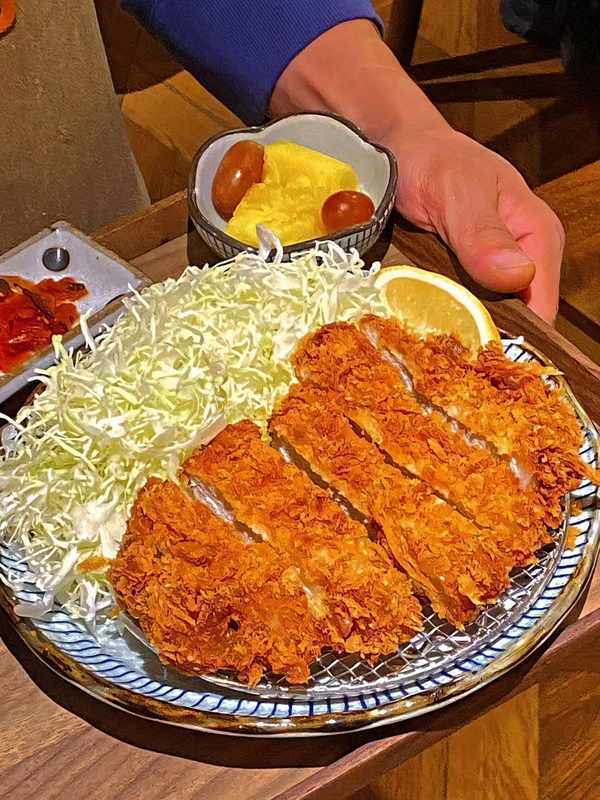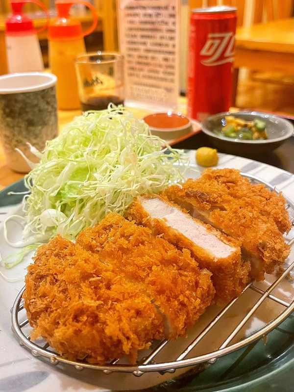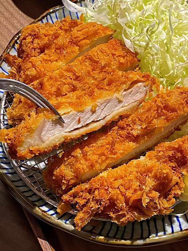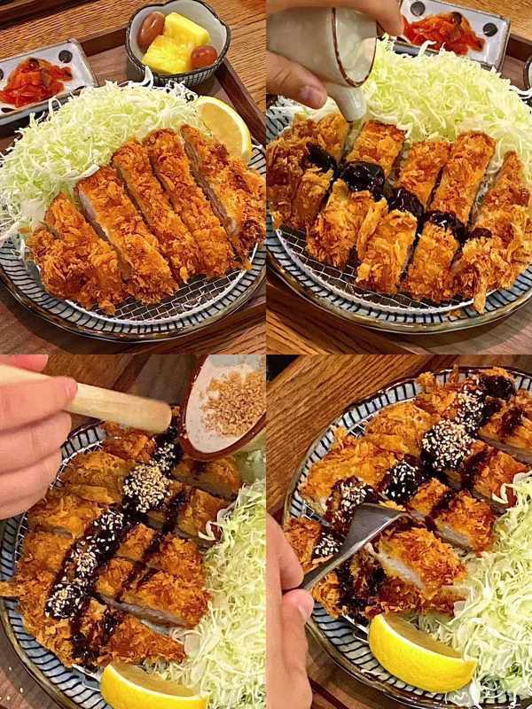 猪排稍稍冷却之后就可以享用了,可以先听听声音,一定会很清清脆,英国人把西餐带到东亚的时候也一并带来了英国黑醋,在日本,炸猪排配的是英国黑醋和用番茄酱调的酱汁,或者是上海辣酱油,当然了,尽量不要把酱汁直接浇在猪排上,那样会让他的脆壳软化,而且调味不均匀,最好像我这样把猪排切条后蘸着酱汁吃,今天的分享就到这里,我们明天再见,byebye。