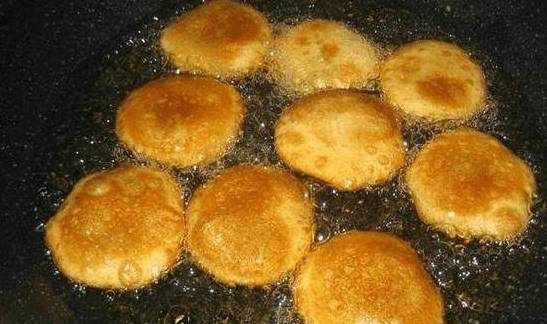 油烧到七八成热时下锅,然后改为中小火,等变成金黄色,两面都鼓起来的时候,就可以出锅啦!