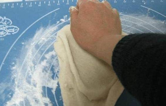 使劲的揉搓,使出吃奶的劲往前推,揉搓一会你就会发现,面团越来越弹了,揪下来一块,扔到地上能弹起来,就算好了!