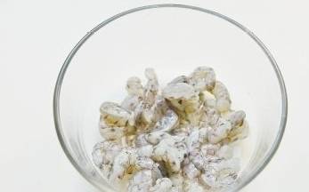 *虾仁不要买现成的,因为多数不新鲜。最好要买活虾,现剥现用。鲜虾买回后放入冰箱急冻半小时,鲜虾硬挺后更容易剥壳。