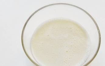 ②蛋清中倒入牛奶,加入玉米淀粉搅拌均匀,成牛奶蛋白液,放入2克盐调味。
