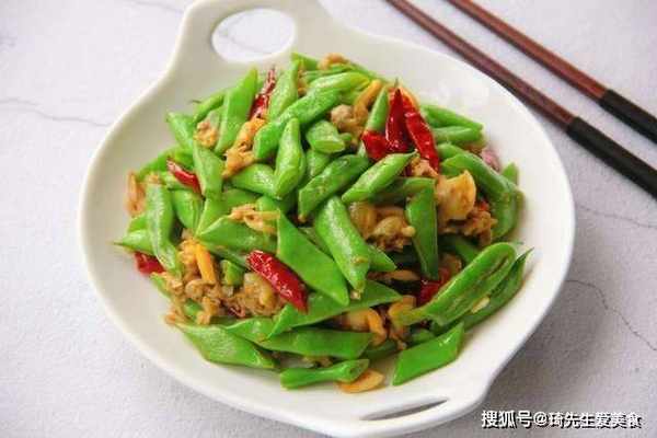6、四季豆煸熟时放适量的盐、味精搅拌入味即可