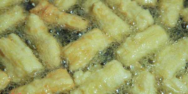 4、锅中加入清油,油温6成热依次把挂好糊的腐竹放到油中,中火炸至金黄捞出控油备用。大家好好是小园一餐,爱做家常菜,关注我分享美食小技巧。