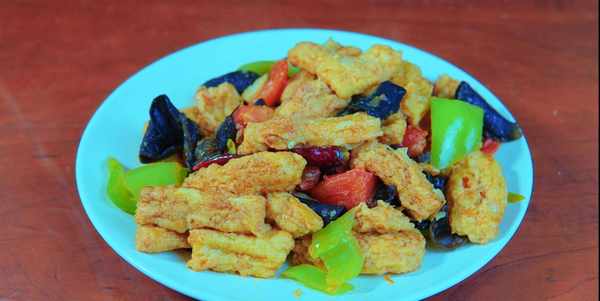 5、西红柿切成小块,泡发木耳切成小块片,青红辣椒切成滚刀块。锅中留底油,葱姜蒜爆香后,把豆瓣酱放入锅中继续煸炒出红油后把西红柿放入锅中,炒出西红柿汁,然后把配菜木耳、青红辣椒放到锅中开始调味,加入少许盐、生抽、老抽。最后把炸好的腐竹放到锅中翻炒均匀即可出锅。大家好好是小园一餐,爱做家常菜,关注我分享美食小技巧。