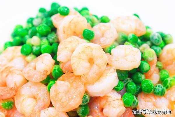 锅内烧水,水烧开以后放入豌豆,淋入一点植物油锁住里面的营养,汆煮1分钟左右,豌豆断生以后放入虾仁继续煮20秒钟倒出来,用清水冲洗干净、控水备用。