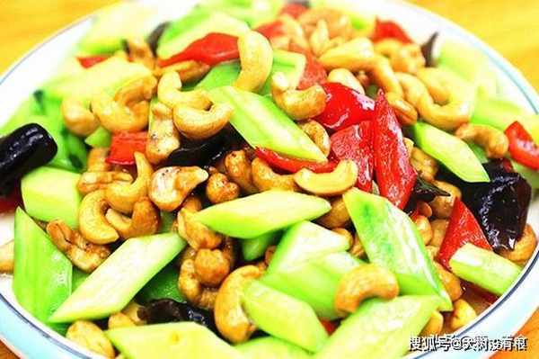 锅内加少许底油,淋入一点清水,加入食盐、白糖、味精、鸡粉、芝麻香油搅拌化开调料,再芶入一点水淀粉把汤汁收至微微发黏,倒入配菜快速的翻匀,再倒入腰果,稍微翻炒几下即可出锅,腰果千万不要久炒,不然吃着就不酥了。颜色清新靓丽,吃着清香爽口,和这个春天简直绝配。