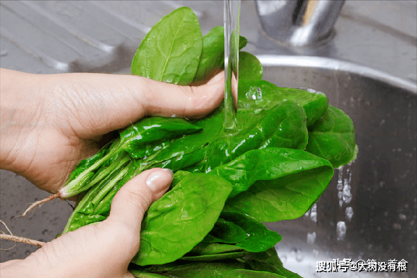 锅里烧水,加入食盐和植物油,食盐能够入底味,植物油能够锁住营养、防止变色,水烧开以后把菠菜放进去,快速焯烫30秒钟立马捞出来,用清水冲洗过凉,这一步主要是为了去除菠菜中的草酸。
