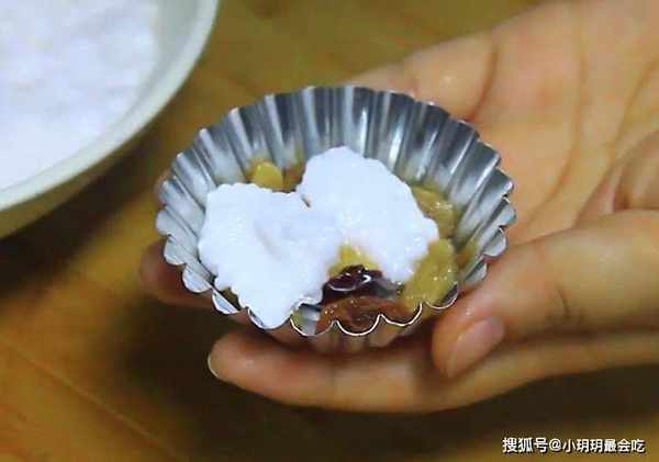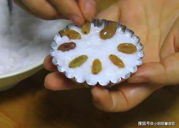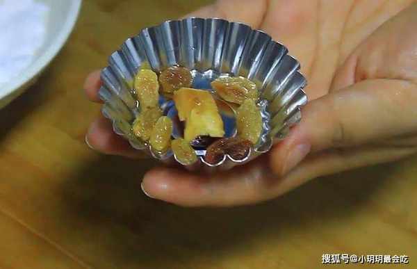 4.模具里刷油,放入红枣碎、葡萄干;西米露做道小零食,做法简单,香甜美味,家里孩子天天都要吃