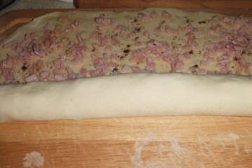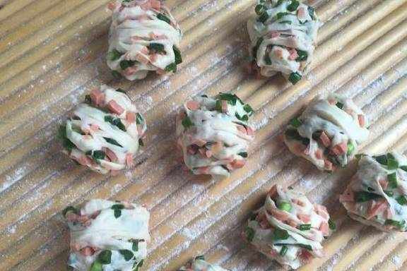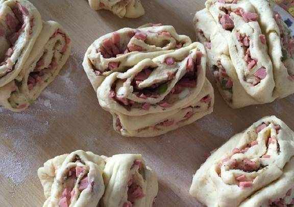 火腿、面、水、盐、酵母、油、五香粉适量