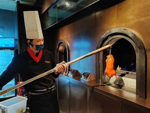 新店青年星厨的明炉烤鸭吸引了很多消费者