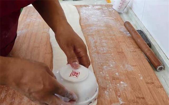 3.用一个小碗一个一个的夹住,这样面团出来的时候大小一致。