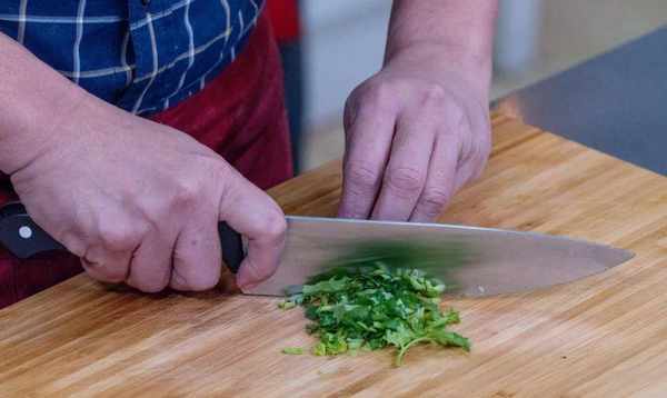 香菜切碎,蘑菇切碎,洋葱切碎。