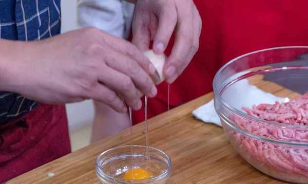 将牛肉和洋葱放入水晶碗中,加入鸡蛋、面包、牛奶拌匀