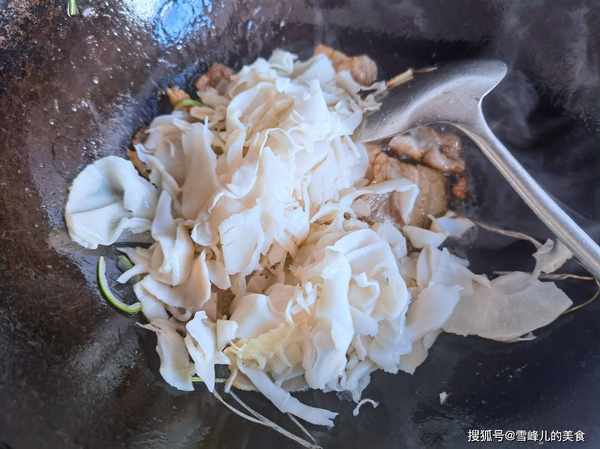 第七步:倒入笋丝煸炒均匀,厚薄均匀的笋丝非常棒,炒得时候也不费时间。